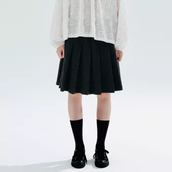 Autumn Elastic Waist Pleated Wool Skirt for Women